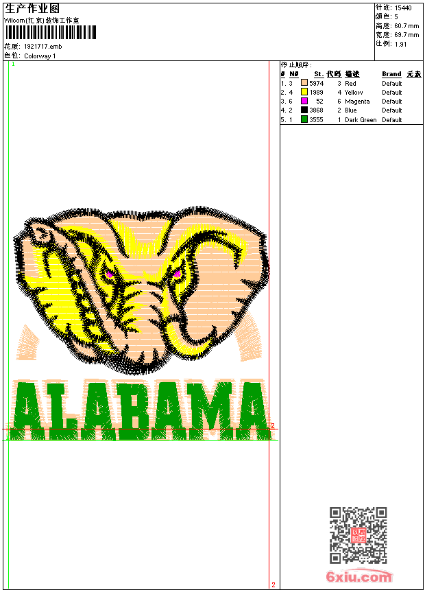 象 大象 章标布贴 alabama grimson tide 点此上传花版兑乐绣币/现金 emb花版参数: 大小:1.06 MB / 尺寸:70*61[毫米] / 针数:15440针 / 线色:5 / 格式:emb / 版本:9 版带文件需绣花软件方可打开,可配色打印导出各种格式或直接上机绣。如无绣花软件可下载1:1模拟效果图。 PNG图片信息:大小:0.1 (MB) /图宽*高:264x230(像素) 上传作者( wwj8*** ) 获得乐绣币:15个 emb下载 1:1图下载 关闭 相似花型推荐: 字母 周线绣 pow 章标 狗 美国斯塔福德郡犬 宠物犬乱针绣精品 鹦鹉 鸟 布贴 牡丹花 水溶贴花 布贴 蝴蝶 大花样 牛仔后担干 苹果手机 物品 蝴蝶珠片 鞋裤 牡丹花 大花样 中国风旗袍唐装 竹子 衣裤鞋包裙通用 花朵 小花 衣裤鞋包裙通用 花树衣裤鞋包裙通用靓花 虎头 衣裤鞋包裙通用男 2018新年快乐 字 象 大象 乱针绣精品 猫头鹰 乱针绣精品 上一个花样:靓花 玫瑰花 下一个花样:字母 周线绣 pow 章标