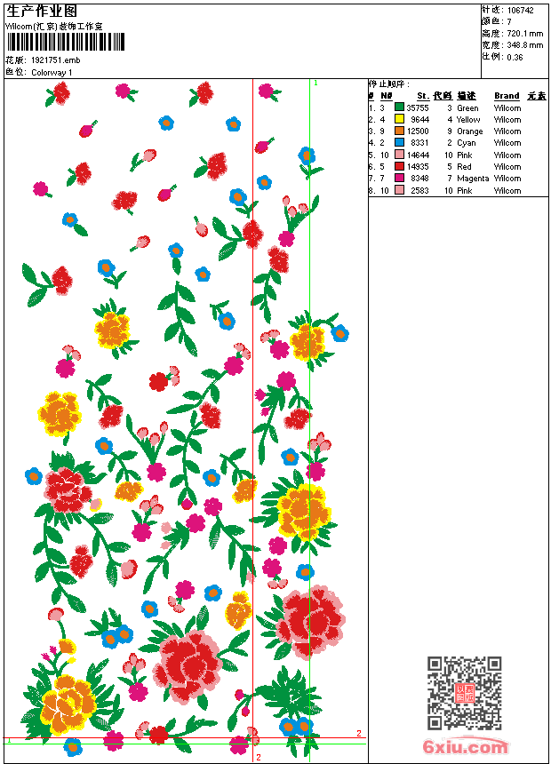牡丹花朵-匹绣- 330头距 点此上传花版兑乐绣币/现金 emb花版参数: 大小:502.50 KB / 尺寸:349*720[毫米] / 针数:106742针 / 线色:7 / 格式:emb / 版本:9 版带文件需绣花软件方可打开,可配色打印导出各种格式或直接上机绣。如无绣花软件可下载1:1模拟效果图。 PNG图片信息:大小:2.5 (MB) /图宽*高:1320x2724(像素) 上传作者( 绣花*** ) 获得乐绣币:20个 emb下载 1:1图下载 关闭 相似花型推荐: 星球 宇宙 木星 行星 鞋面 人物 胡子哥 卡通 章标 鞋面花 牡丹 绣花鞋 牡丹花 头巾 围巾 盖头 装饰 麒麟 中国风 虎 老虎 几何 各种雪花 鹰 老鹰 狮王 lion king 虎 绳绣老虎头 裙摆花条 鹤 天鹅 满幅 匹绣 蕾丝 凤凰 牙刷绣 小鬼 特种绣 上一个花样:鸟-精品 中国风 下一个花样:星球 宇宙 木星 行星