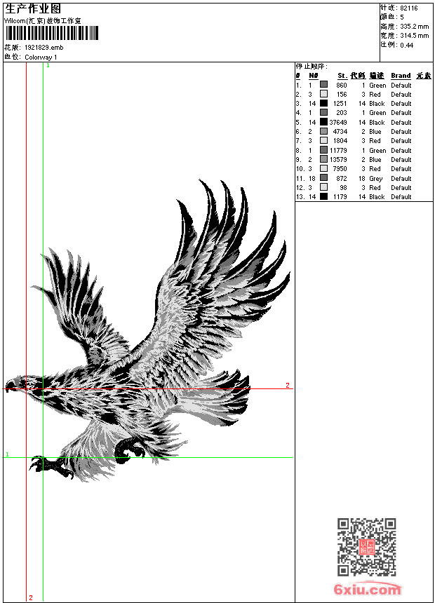 鹰 大展宏图工艺精品 鸟 点此上传花版兑乐绣币/现金 emb花版参数: 大小:431.00 KB / 尺寸:315*335[毫米] / 针数:82116针 / 线色:5 / 格式:emb / 版本:9 版带文件需绣花软件方可打开,可配色打印导出各种格式或直接上机绣。如无绣花软件可下载1:1模拟效果图。 PNG图片信息:大小:1.5 (MB) /图宽*高:1190x1269(像素) 上传作者( b611*** ) 获得乐绣币:50个 emb下载 1:1图下载 关闭 相似花型推荐: 人物 男 动漫 帅哥 人物 美女 动漫 日本 猴头 simut 水果 葡萄 装饰 龙 青龙 龙 蛇龟争霸 玄武 叶 一叶知秋 树叶 鱼 剪纸 中国风 十二生肖 靓花 月季花 猪 小猪 剪纸 中国风 十二生肖 虎 豹子金片 珠片 猫头 花 女时装后背大花 藤 人物 男女爱情 十字绣 六卡通组合 精品 鹤 仙鹤 竹 时装后背 上一个花样:牡丹花 靓花 下一个花样:人物 男 动漫 帅哥