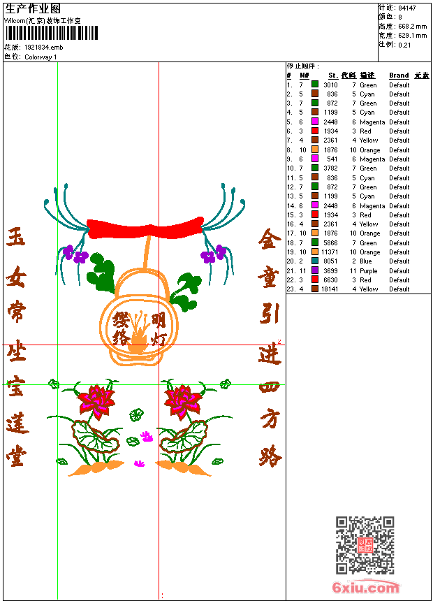荷花保平安荷花 玉女常坐宝莲堂 金童引进四方路 佛 中国风 点此上传花版兑乐绣币/现金 emb花版参数: 大小:348.50 KB / 尺寸:629*668[毫米] / 针数:84147针 / 线色:8 / 格式:emb / 版本:9 版带文件需绣花软件方可打开,可配色打印导出各种格式或直接上机绣。如无绣花软件可下载1:1模拟效果图。 PNG图片信息:大小:2.2 (MB) /图宽*高:2380x2528(像素) 上传作者( 临沂*** ) 获得乐绣币:30个 emb下载 1:1图下载 关闭 相似花型推荐: 人物 男女 爱情 婚礼 靓花朵 毛衣 冬 牡丹花 靓花 鹰 大展宏图工艺精品 鸟 人物 男 动漫 帅哥 人物 美女 动漫 日本 猴头 simut 水果 葡萄 装饰 龙 青龙 龙 蛇龟争霸 玄武 叶 一叶知秋 树叶 鱼 剪纸 中国风 十二生肖 靓花 月季花 猪 小猪 剪纸 中国风 十二生肖 虎 豹子金片 珠片 上一个花样:靓花鸟 中国风 旗袍 下一个花样:人物 男女 爱情 婚礼