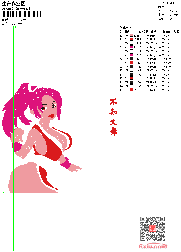 美女 动漫 不知火舞 点此上传花版兑乐绣币/现金 emb花版参数: 大小:217.50 KB / 尺寸:216*208[毫米] / 针数:34983针 / 线色:5 / 格式:emb / 版本:9 版带文件需绣花软件方可打开,可配色打印导出各种格式或直接上机绣。如无绣花软件可下载1:1模拟效果图。 PNG图片信息:大小:0.6 (MB) /图宽*高:816x786(像素) 上传作者( 1588*** ) 获得乐绣币:5个 emb下载 1:1图下载 关闭 相似花型推荐: 迪士尼 动漫 白雪公主 迪斯尼公主 动漫 人物 动漫 东皇太一 人物 爱情 丘比特 蝴蝶 logo 中国味道 吉祥图腾 中国风 龙 红龙 靓花朵 孔雀 靓花朵 靓花朵 人物 京剧 脸谱 风景 世外桃源 工艺精品乱针绣 龙凤呈祥 上一个花样:蝴蝶花 下一个花样:迪士尼 动漫 白雪公主
