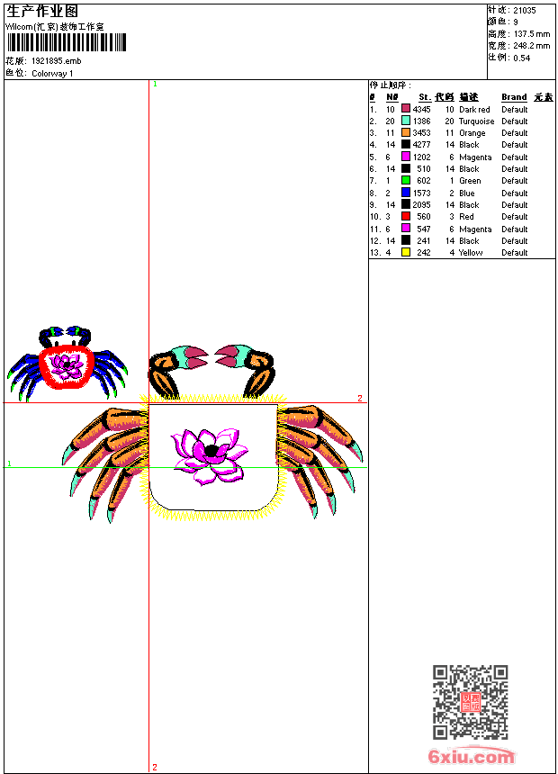 鱼 螃蟹 贴布 点此上传花版兑乐绣币/现金 emb花版参数: 大小:158.00 KB / 尺寸:248*138[毫米] / 针数:21035针 / 线色:9 / 格式:emb / 版本:6 版带文件需绣花软件方可打开,可配色打印导出各种格式或直接上机绣。如无绣花软件可下载1:1模拟效果图。 PNG图片信息:大小:0.4 (MB) /图宽*高:939x521(像素) 上传作者( 1588*** ) 获得乐绣币:1个 emb下载 1:1图下载 关闭 相似花型推荐: 虎 时尚花老虎 章仔USA18标 凤凰 字母绳绣 靓花 欧美 装饰 欧美 裤袋 时装花 裙摆 时装花 靓花 百合花 匹绣 花丛 裤 衣 牡丹花 鞋 花朵 蝴蝶花 美女 动漫 不知火舞 迪士尼 动漫 白雪公主 迪斯尼公主 动漫 上一个花样:玫瑰花 美国国旗玫瑰 精品 下一个花样:虎 时尚花老虎