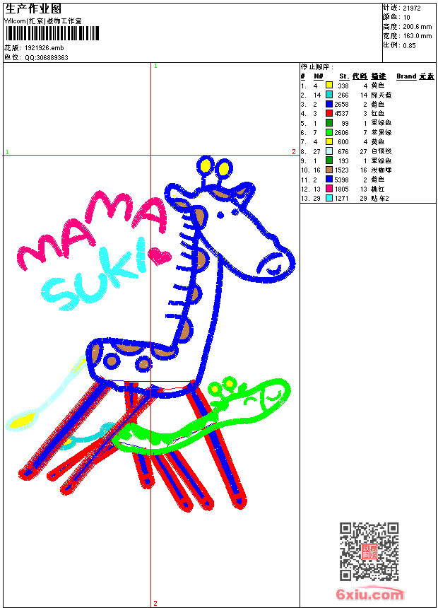 鹿 长颈鹿 卡通 点此上传花版兑乐绣币/现金 emb花版参数: 大小:177.50 KB / 尺寸:163*201[毫米] / 针数:21972针 / 线色:10 / 格式:emb / 版本:9 版带文件需绣花软件方可打开,可配色打印导出各种格式或直接上机绣。如无绣花软件可下载1:1模拟效果图。 PNG图片信息:大小:0.3 (MB) /图宽*高:617x759(像素) 上传作者( 2500*** ) 获得乐绣币:5个 emb下载 1:1图下载 关闭 相似花型推荐: 花朵衣 标专 high moooi 虎头 插针 裙满幅花朵 裙领满幅花朵 领前胸花朵 领花 裙摆花朵 领花朵 马 斑马贴布 花朵 花环 珠片 香水 瓶子 心形 爱心 猫头鹰 鸟 猫头鹰 鸟 珠片 上一个花样:人物 美少女 动漫 下一个花样:花朵衣