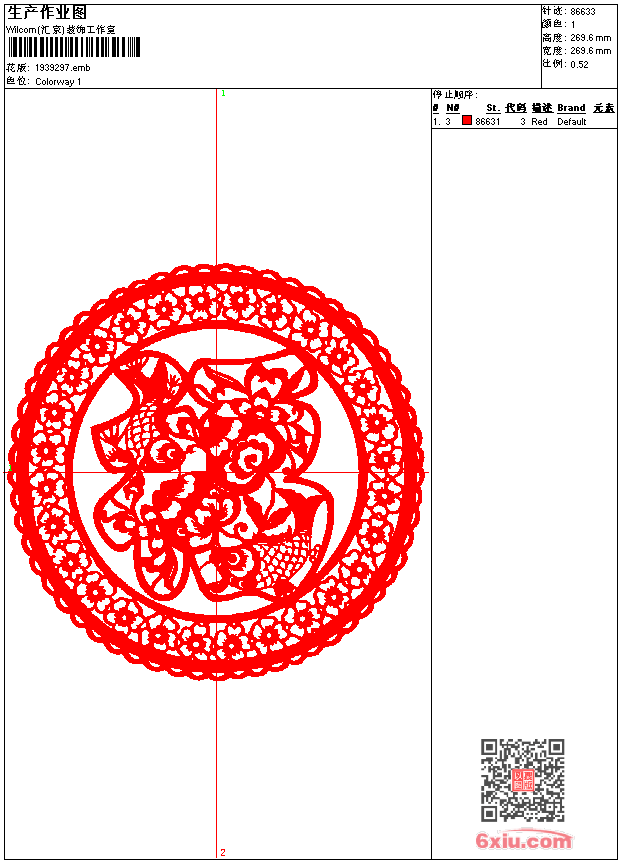 - emb花版参数: 大小:373.00 KB / 尺寸:270*270[毫米] / 针数:86633针 / 线色:1 / 格式:emb / 版本:9