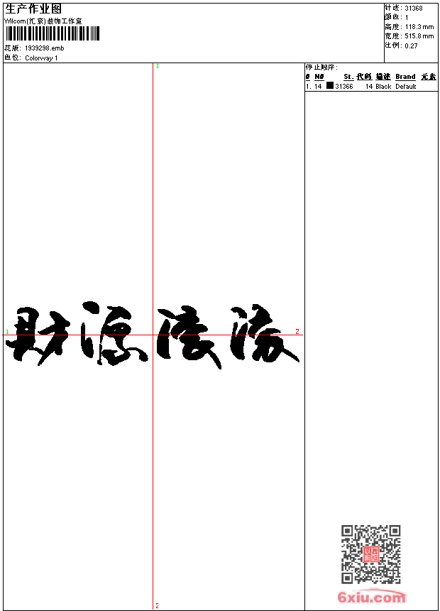 - emb花版参数: 大小:58.00 KB / 尺寸:516*118[毫米] / 针数:31368针 / 线色:1 / 格式:emb / 版本:9