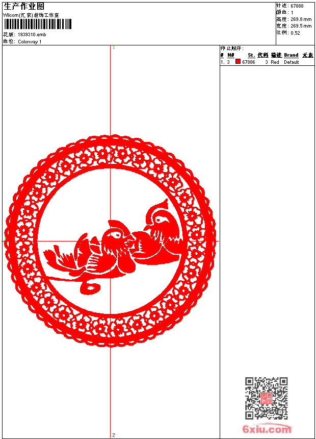 - emb花版参数: 大小:218.50 KB / 尺寸:270*270[毫米] / 针数:67888针 / 线色:1 / 格式:emb / 版本:9