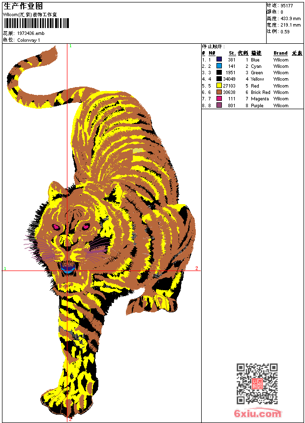 虎 老虎 点此上传花版兑乐绣币/现金 emb花版参数: 大小:518.00 KB / 尺寸:219*434[毫米] / 针数:95178针 / 线色:8 / 格式:emb / 版本:9 版带文件需绣花软件方可打开,可配色打印导出各种格式或直接上机绣。如无绣花软件可下载1:1模拟效果图。 PNG图片信息:大小:1.4 (MB) /图宽*高:829x1642(像素) 上传作者( 务须*** ) 获得乐绣币:10个 emb下载 1:1图下载 关闭 相似花型推荐: 人物 二佛伯 精品 中国风古代 门神 领前胸花 风景 山间小屋 别墅 山青水秀 领 时装前花 喜 囍 双喜 喜庆 结婚礼 中国风 字画 新郎 章仔 汽车 喜 囍 双喜 喜庆 结婚礼 中国风 天长地久 虎 猛虎下山 精品 字画 康有为 人与天通 凤凰 松树 黄山迎客松 工艺精品墙挂壁画 树 椰树 east cartel 骷髅 英文鬼头 revive 狗 章 卡通 童 章仔 男 paw patrol 上一个花样:鹰 老鹰 展翅高飞 下一个花样:人物 二佛伯 精品 中国风古代 门神