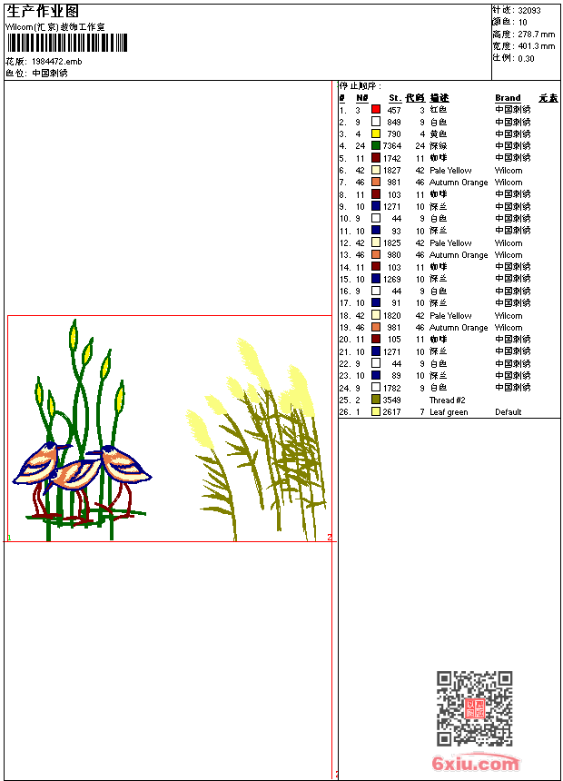 鹤 水鸟 芦苇 点此上传花版兑乐绣币/现金 emb花版参数: 大小:308.00 KB / 尺寸:401*279[毫米] / 针数:32093针 / 线色:10 / 格式:emb / 版本:9 版带文件需绣花软件方可打开,可配色打印导出各种格式或直接上机绣。如无绣花软件可下载1:1模拟效果图。 PNG图片信息:大小:0.9 (MB) /图宽*高:1518x1055(像素) 上传作者( 魏有*** ) 获得乐绣币:20个 emb下载 1:1图下载 关闭 相似花型推荐: 花树 荷花鲤鱼 精品 莲花 中国风 插针 人物 雷神 神仙 神话 精品 鸟 梅花 精品 鸟语花香 靓花 牡丹花 插针 网布满幅 网布满幅 网布满幅 网布满幅 网布满幅 网布满幅 网布满幅 网布满幅 网布满幅 网布满幅 上一个花样:鹅 天鹅 下一个花样:花树