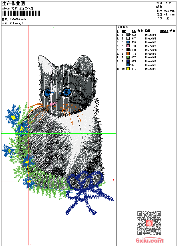 猫精品 点此上传花版兑乐绣币/现金 emb花版参数: 大小:47.50 KB / 尺寸:69*99[毫米] / 针数:13193针 / 线色:10 / 格式:emb / 版本:9 版带文件需绣花软件方可打开,可配色打印导出各种格式或直接上机绣。如无绣花软件可下载1:1模拟效果图。 PNG图片信息:大小:0.2 (MB) /图宽*高:262x375(像素) 上传作者( wuli*** ) 获得乐绣币:20个 emb下载 1:1图下载 关闭 相似花型推荐: 鸟头精品 美女乱针绣 鲤鱼 九鱼图 中国风吉祥精品 特种绣 链式平绣混合花 抱枕毛巾链式绣 特种绣 骷髅虎头 人物 油画小女孩 精品 卡通 贴布维尼熊女 民族风花瓶 蝴蝶民族风 包包 爆款软包 背景墙欧洲风格 民族风花袄 玫瑰花 靓花 蝴蝶 墙布 背景墙牡丹花 靓花 如意 上一个花样:风景 柳树凉亭 松树 精品 下一个花样:鸟头精品