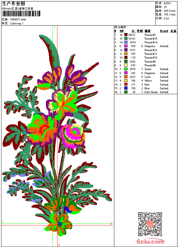 花卉 女装 点此上传花版兑乐绣币/现金 emb花版参数: 大小:302.00 KB / 尺寸:155*285[毫米] / 针数:62581针 / 线色:15 / 格式:emb / 版本:9 版带文件需绣花软件方可打开,可配色打印导出各种格式或直接上机绣。如无绣花软件可下载1:1模拟效果图。 PNG图片信息:大小:0.6 (MB) /图宽*高:587x1079(像素) 上传作者( 3296*** ) 获得乐绣币:5个 emb下载 1:1图下载 关闭 相似花型推荐: 龙 中国风 十字绣玄武 麒麟 吉祥 墙布 背景墙 山水九重春色 风景 精品 墙布 鸟 玄关背景墙 屏风 花 乱针锈 童牛仔下脚 童牛仔上 女装 前幅左 女装 新款花前幅 女装 花叶子 花鸟 女装 牛仔花 女装 精品新款毛衣下摆 鸟 女装 精品花鸟 女装 毛衣胸前幅 上一个花样:龟 下一个花样:龙