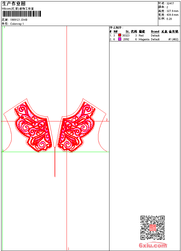 珠片前幅左右 女装 点此上传花版兑乐绣币/现金 emb花版参数: 大小:235.00 KB / 尺寸:440*328[毫米] / 针数:32417针 / 线色:2 / 格式:emb / 版本:9 版带文件需绣花软件方可打开,可配色打印导出各种格式或直接上机绣。如无绣花软件可下载1:1模拟效果图。 PNG图片信息:大小:1.0 (MB) /图宽*高:1664x1241(像素) 上传作者( 啊冰*** ) 获得乐绣币:1个 emb下载 1:1图下载 关闭 相似花型推荐: 短裙下摆 女装 条码 下摆条幅 胸前幅左下 女装 胸前幅上 女装 雕孔花边 袖口 女装 领 时装胸前花 时装下摆 女装 条幅 女装 满幅 大花朵 时装前左 女装 复杂 长左袖 女装 抽象 鹤 高端连衣裙鹤 裙 高端包臀长袖时装 旗袍 裙 连衣裙胸花 女装 上一个花样:前下摆 女装 下一个花样:短裙下摆 女装