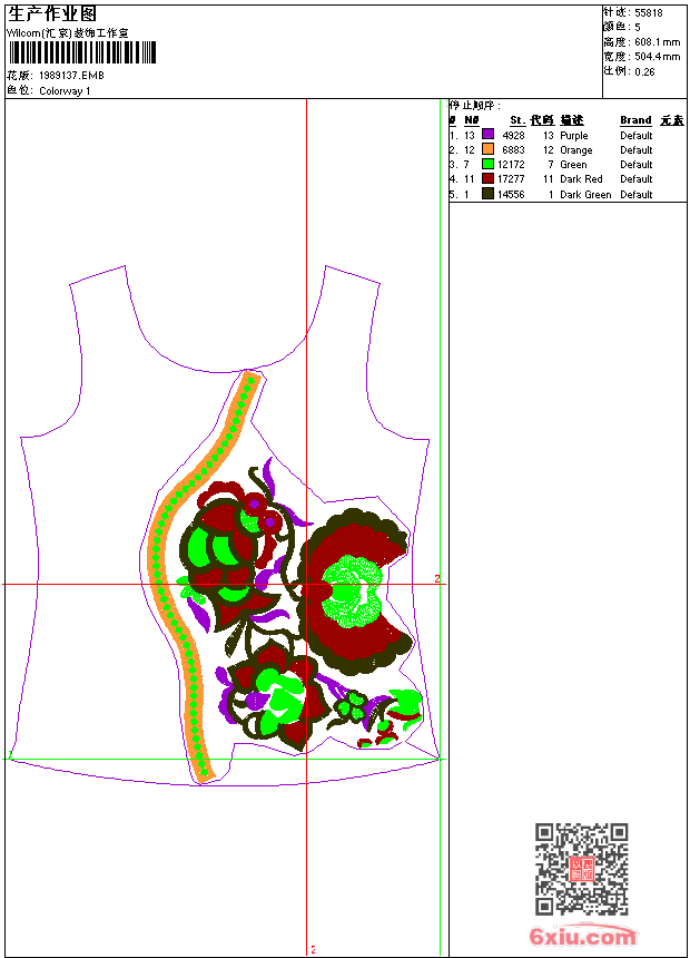 民族服前幅 点此上传花版兑乐绣币/现金 emb花版参数: 大小:1.87 MB / 尺寸:504*608[毫米] / 针数:55818针 / 线色:5 / 格式:emb / 版本:9 版带文件需绣花软件方可打开,可配色打印导出各种格式或直接上机绣。如无绣花软件可下载1:1模拟效果图。 PNG图片信息:大小:2.2 (MB) /图宽*高:1908x2301(像素) 上传作者( 啊冰*** ) 获得乐绣币:1个 emb下载 1:1图下载 关闭 相似花型推荐: 民族服下摆 条码 民族服袖口 裙 高端时装连衣裙前幅 民族服下摆 抽象 鸟 抽象 翅膀 裙装前幅 裙 鸟花 连衣裙腰 裙 时装包臀裙前 领 肩左右 花 前满幅 女装 裙下摆 毛衣腰间 花 前幅线条镂空 前幅上 女装 前下摆 女装 上一个花样:裙装下摆 大花 下一个花样:民族服下摆 条码