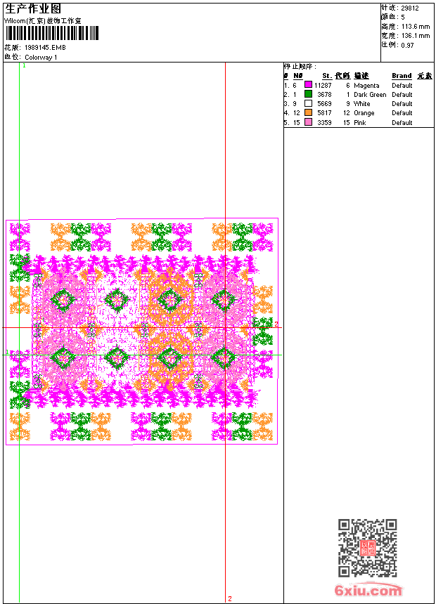 台布花 抽象 条码 点此上传花版兑乐绣币/现金 emb花版参数: 大小:93.50 KB / 尺寸:136*114[毫米] / 针数:29812针 / 线色:5 / 格式:emb / 版本:9 版带文件需绣花软件方可打开,可配色打印导出各种格式或直接上机绣。如无绣花软件可下载1:1模拟效果图。 PNG图片信息:大小:0.4 (MB) /图宽*高:515x430(像素) 上传作者( 啊冰*** ) 获得乐绣币:1个 emb下载 1:1图下载 关闭 相似花型推荐: 女大花 高端时装腰间花 领 时装前幅上 高端精品时装前幅上 大花 时装下摆 前幅上珠片 民族服腰 狮子头 裙装下摆 大花 民族服前幅 民族服下摆 条码 民族服袖口 裙 高端时装连衣裙前幅 民族服下摆 抽象 鸟 抽象 翅膀 裙装前幅 裙 鸟花 连衣裙腰 上一个花样:裙 高端裙下摆 大花 下一个花样:女大花 高端时装腰间花