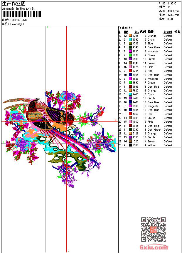 鸟 精品双鸟 点此上传花版兑乐绣币/现金 emb花版参数: 大小:727.00 KB / 尺寸:473*406[毫米] / 针数:119330针 / 线色:13 / 格式:emb / 版本:9 版带文件需绣花软件方可打开,可配色打印导出各种格式或直接上机绣。如无绣花软件可下载1:1模拟效果图。 PNG图片信息:大小:2.8 (MB) /图宽*高:1790x1538(像素) 上传作者( 啊冰*** ) 获得乐绣币:30个 emb下载 1:1图下载 关闭 相似花型推荐: 鸟 时装衣领后 时装前幅右 时装下摆 抽象 条码 时装肩花 裙 高端裙下摆 大花 台布花 抽象 条码 女大花 高端时装腰间花 领 时装前幅上 高端精品时装前幅上 大花 时装下摆 前幅上珠片 民族服腰 狮子头 裙装下摆 大花 民族服前幅 民族服下摆 条码 上一个花样:牛仔后袋 下一个花样:鸟 时装衣领后