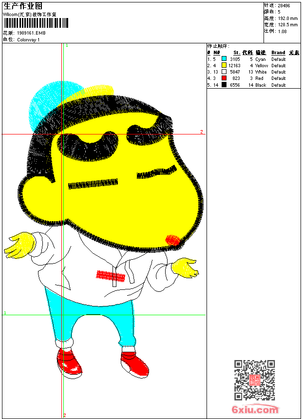 人物 蜡笔小星 点此上传花版兑乐绣币/现金 emb花版参数: 大小:72.00 KB / 尺寸:128*192[毫米] / 针数:28496针 / 线色:5 / 格式:emb / 版本:9 版带文件需绣花软件方可打开,可配色打印导出各种格式或直接上机绣。如无绣花软件可下载1:1模拟效果图。 PNG图片信息:大小:0.4 (MB) /图宽*高:486x727(像素) 上传作者( Visc*** ) 获得乐绣币:5个 emb下载 1:1图下载 关闭 相似花型推荐: 猫 毛巾绣肥猫 卡通 男 海贼王 鸡 工艺公鸡 精品 花边条幅 时装左下脚 时装袖子花 牛仔后袋 鸟 精品双鸟 鸟 时装衣领后 时装前幅右 时装下摆 抽象 条码 时装肩花 裙 高端裙下摆 大花 台布花 抽象 条码 女大花 高端时装腰间花 上一个花样:人物 男生 童子军 下一个花样:猫 毛巾绣肥猫