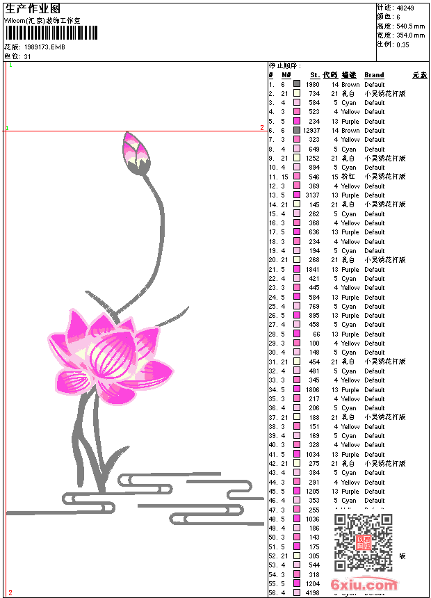 荷花 点此上传花版兑乐绣币/现金 emb花版参数: 大小:232.50 KB / 尺寸:526*541[毫米] / 针数:48421针 / 线色:6 / 格式:emb / 版本:9 版带文件需绣花软件方可打开,可配色打印导出各种格式或直接上机绣。如无绣花软件可下载1:1模拟效果图。 PNG图片信息:大小:0.9 (MB) /图宽*高:1990x2045(像素) 上传作者( 张金*** ) 获得乐绣币:10个 emb下载 1:1图下载 关闭 相似花型推荐: 条码 海水纹海浪 麒麟终曲版 中国风龙 墙布 背景墙 旭日东升 风景 山水 鸟鹤 章标 穿梭机 珠片 熊 乱针绣 美女 贴布 抽象 时装 恐龙头 恐龙 鹿 卡通 童装 人物 男生 童子军 人物 蜡笔小星 猫 毛巾绣肥猫 卡通 男 海贼王 鸡 工艺公鸡 精品 花边条幅 上一个花样:鱼 中国风 吉祥 鲤鱼 下一个花样:条码 海水纹海浪