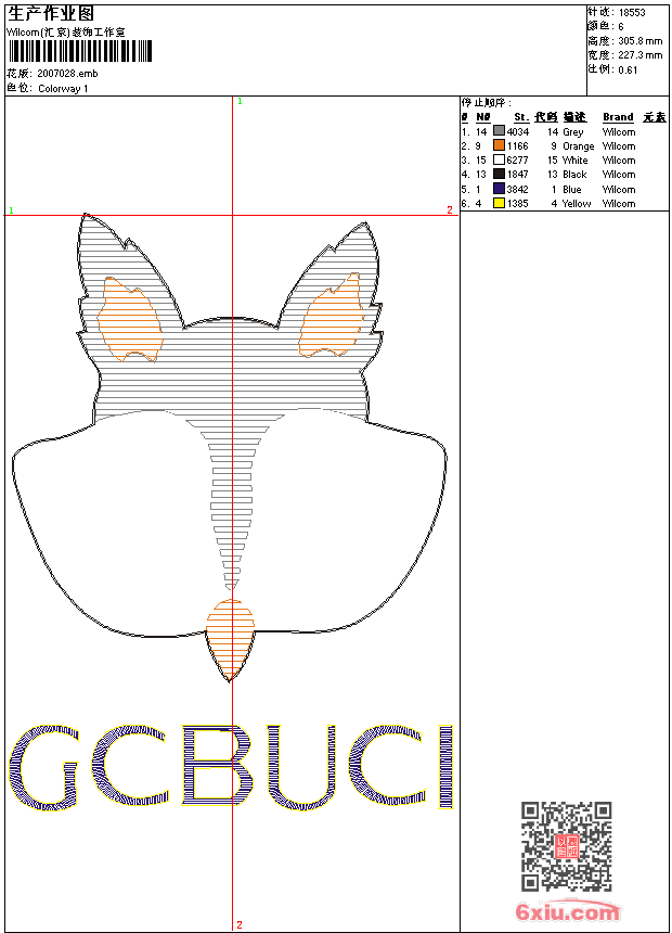 狐狸头毛巾绣加字母 点此上传花版兑乐绣币/现金 emb花版参数: 大小:45.50 KB / 尺寸:227*306[毫米] / 针数:18553针 / 线色:6 / 格式:emb / 版本:9 版带文件需绣花软件方可打开,可配色打印导出各种格式或直接上机绣。如无绣花软件可下载1:1模拟效果图。 PNG图片信息:大小:0.2 (MB) /图宽*高:860x1157(像素) 上传作者( b611*** ) 获得乐绣币:5个 emb下载 1:1图下载 关闭 相似花型推荐: 熊-卡通 抱枕 垫子 风铃 鸳鸯戏水 民族服装 鹤 芫绫 仙鹤 梅花 服装 LOGO 章标 CS 车标- 荣威 LOGO roewe 猪 三只猪 卡通 牛头乱针绣 汉服牡丹花 鲤鱼 中国风 佛绣 拜垫 莲花 喜庆 2米结婚志喜横幅 脸谱 戏剧 字 出入平安 上一个花样:汉服 九尾狐狸 下一个花样:熊-卡通