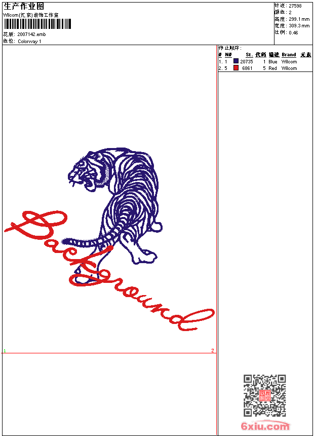 虎 老虎 点此上传花版兑乐绣币/现金 emb花版参数: 大小:1.01 MB / 尺寸:309*299[毫米] / 针数:27598针 / 线色:2 / 格式:emb / 版本:9 版带文件需绣花软件方可打开,可配色打印导出各种格式或直接上机绣。如无绣花软件可下载1:1模拟效果图。 PNG图片信息:大小:0.5 (MB) /图宽*高:1171x1132(像素) 上传作者( chen*** ) 获得乐绣币:20个 emb下载 1:1图下载 关闭 相似花型推荐: 靓花 蜜蜂 章仔标 熊 章仔标 鸟头 章仔标 花 乱花 时装 狮子 豹龙虎头 满幅女装花--民族 鹤 仙鹤飞天 汉服 墙布 背景墙孔雀玄关 富贵 精品 简单花 熊 卡通 兔子 嫦娥月兔 汉服 蝴蝶 猪八戒 卡通 上一个花样:蝴蝶 珠片 下一个花样:靓花