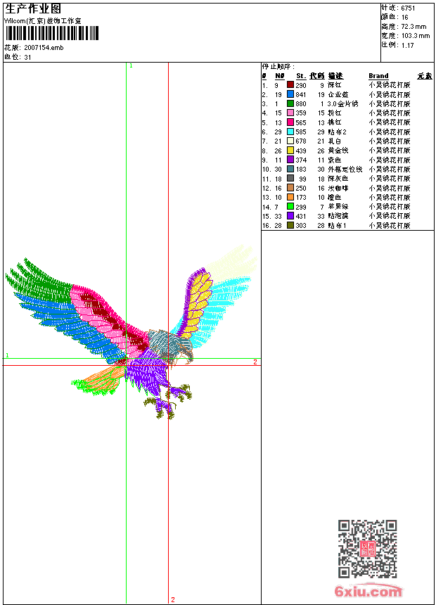 鹰 点此上传花版兑乐绣币/现金 emb花版参数: 大小:999.50 KB / 尺寸:103*72[毫米] / 针数:6751针 / 线色:16 / 格式:emb / 版本:9 版带文件需绣花软件方可打开,可配色打印导出各种格式或直接上机绣。如无绣花软件可下载1:1模拟效果图。 PNG图片信息:大小:0.1 (MB) /图宽*高:391x274(像素) 上传作者( 汪广*** ) 获得乐绣币:5个 emb下载 1:1图下载 关闭 相似花型推荐: 兰花 莲花 荷花 虎头 男 章标 猫 牙刷绣 卡通 虎 2只老虎 双虎 章男 鹤 丹顶鹤 火烈鸟 古典 皇宫花样 民族 圆形 虎头 老虎 男 章标 花蝴蝶 鹤 蝴蝶 珠片 虎 老虎 靓花 蜜蜂 章仔标 熊 章仔标 上一个花样:章标 撸起袖子加油干美国人 下一个花样:兰花
