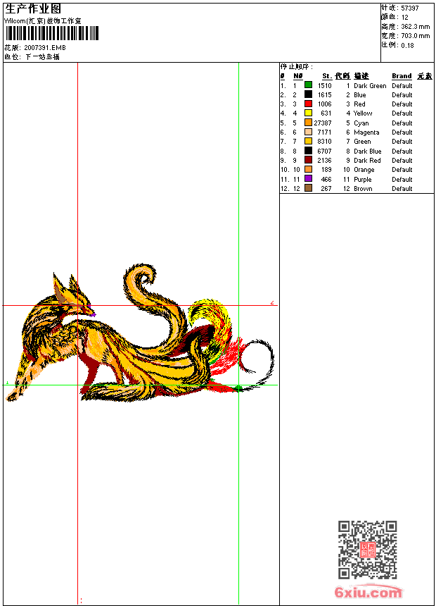 狐狸 九尾狐 汉服 点此上传花版兑乐绣币/现金 emb花版参数: 大小:322.50 KB / 尺寸:703*362[毫米] / 针数:57397针 / 线色:12 / 格式:emb / 版本:9 版带文件需绣花软件方可打开,可配色打印导出各种格式或直接上机绣。如无绣花软件可下载1:1模拟效果图。 PNG图片信息:大小:3.8 (MB) /图宽*高:2660x1371(像素) 上传作者( 3940*** ) 获得乐绣币:100个 emb下载 1:1图下载 关闭 相似花型推荐: 猫头鹰 童装 童装 恐龙 小怪兽 童装 懒蛋 梅花 靓花 牡丹花 靓花 童装 超人 牡丹花 靓花 童装 西瓜 童装 蜘蛛侠 墙布 鸟语花香 背景墙 燕子南飞 汉服 墙布 背景墙-鸟语花香 靓花 汉服 羽毛 汉服 上一个花样:风景 水墨山水 精品 下一个花样:猫头鹰 童装