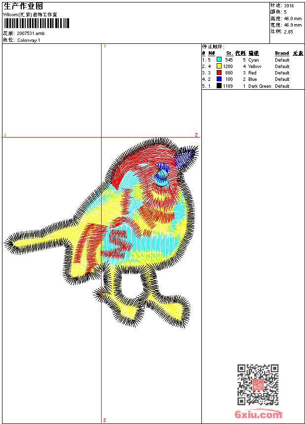 鸟 点此上传花版兑乐绣币/现金 emb花版参数: 大小:282.50 KB / 尺寸:47*46[毫米] / 针数:3912针 / 线色:5 / 格式:emb / 版本:9 版带文件需绣花软件方可打开,可配色打印导出各种格式或直接上机绣。如无绣花软件可下载1:1模拟效果图。 PNG图片信息:大小:0.0 (MB) /图宽*高:178x175(像素) 上传作者( magi*** ) 获得乐绣币:10个 emb下载 1:1图下载 关闭 相似花型推荐: 荷花 汉服 马到功成 八骏图 精品 单枪匹马 十字绣 鸟 精品 猫头鹰 周线针 精品 童 闹钟 狗 哈吉斯狗 童 贴布 猪 卡通 贴布 小猪 章标 范思哲人头标 logo 兔子 卡通 童 蝴蝶 虎豹 凤凰同心 马到功成 八骏图 精品 单枪匹马 牡丹花 富贵祯祥 国色天香 精品 工艺 上一个花样:鸟 下一个花样:荷花 汉服