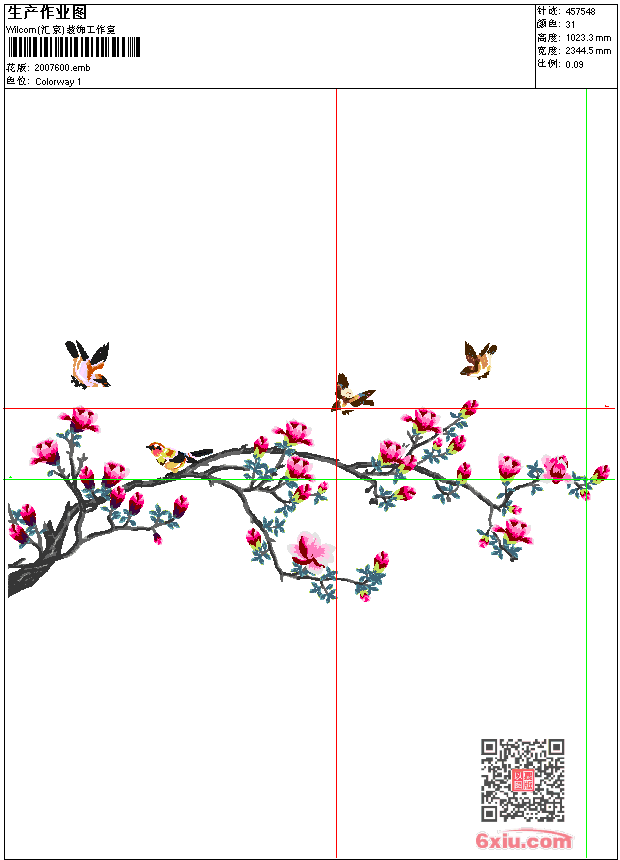 - emb花版参数: 大小:2.51 MB / 尺寸:2345*1023[毫米] / 针数:457548针 / 线色:31 / 格式:emb / 版本:9