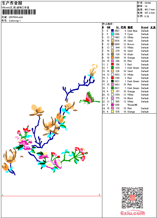 - emb花版参数: 大小:246.00 KB / 尺寸:367*484[毫米] / 针数:39166针 / 线色:14 / 格式:emb / 版本:9