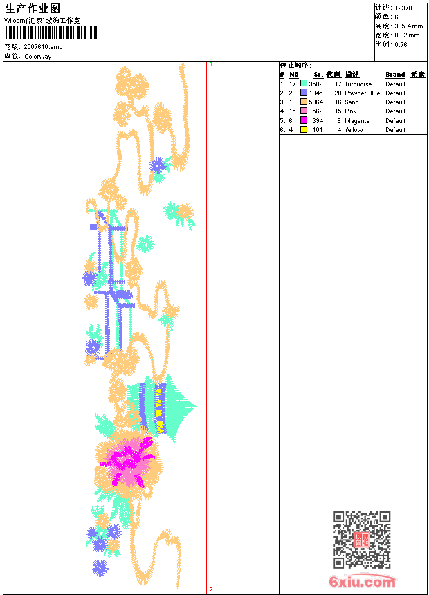- emb花版参数: 大小:84.00 KB / 尺寸:80*365[毫米] / 针数:12370针 / 线色:6 / 格式:emb / 版本:9
