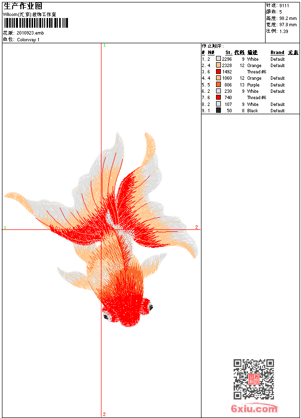 鱼 锦鲤 爆款 男 点此上传花版兑乐绣币/现金 emb花版参数: 大小:1.23 MB / 尺寸:98*98[毫米] / 针数:9111针 / 线色:5 / 格式:emb / 版本:9 版带文件需绣花软件方可打开,可配色打印导出各种格式或直接上机绣。如无绣花软件可下载1:1模拟效果图。 PNG图片信息:大小:0.1 (MB) /图宽*高:370x372(像素) 上传作者( jack*** ) 获得乐绣币:10个 emb下载 1:1图下载 关闭 相似花型推荐: 龙 九龙壁 鱼 金鱼 靓花 插针 龙 恐龙 墙布 孔雀 国色天香 背景墙 墙布 玉兰花 冰清玉洁 背景墙 墙布 马头 背景墙 摩托车 鸟 十字绣 十字绣 十字绣 玫瑰花 十字绣 卡通 链目绣 卡通 上一个花样:鹤 下一个花样:龙 九龙壁