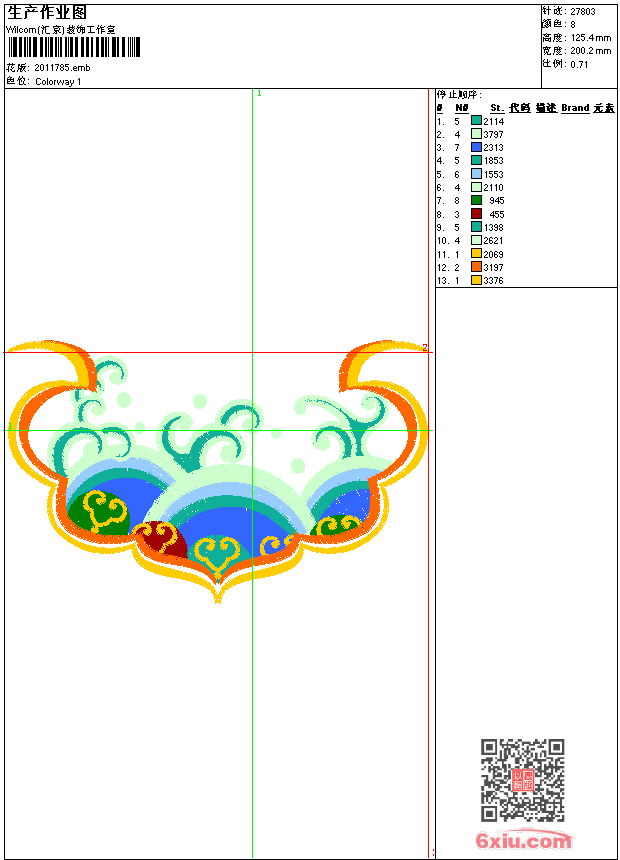 汉服 五彩锁 中国风 传统 点此上传花版兑乐绣币/现金 emb花版参数: 大小:146.50 KB / 尺寸:200*125[毫米] / 针数:27803针 / 线色:8 / 格式:emb / 版本:e2 版带文件需绣花软件方可打开,可配色打印导出各种格式或直接上机绣。如无绣花软件可下载1:1模拟效果图。 PNG图片信息:大小:0.4 (MB) /图宽*高:758x475(像素) 上传作者( 隆凤*** ) 获得乐绣币:30个 emb下载 1:1图下载 关闭 相似花型推荐: 龙 汉服 迪士尼 狗 卡通童 墙布 飘邈之旅 风景 山水 背景墙 墙布 软包 屏风 轻奢风 背景墙 墙布 山水风景 背景墙 靓花 玫瑰花 插针 墙布 背景墙 鱼跃龙门 屏风 本网有另一相似 鹤 鱼 锦鲤 爆款 男 龙 九龙壁 鱼 金鱼 靓花 插针 龙 恐龙 墙布 孔雀 国色天香 背景墙 墙布 玉兰花 冰清玉洁 背景墙 上一个花样:汉服 荷塘月色 荷花 鲤鱼 下一个花样:龙 汉服