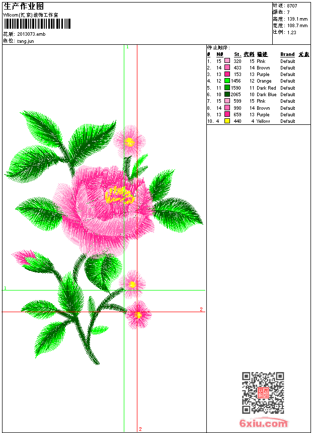 靓花 插针花 点此上传花版兑乐绣币/现金 emb花版参数: 大小:2.40 MB / 尺寸:109*139[毫米] / 针数:8707针 / 线色:7 / 格式:emb / 版本:9 版带文件需绣花软件方可打开,可配色打印导出各种格式或直接上机绣。如无绣花软件可下载1:1模拟效果图。 PNG图片信息:大小:0.2 (MB) /图宽*高:412x526(像素) 上传作者( 华北*** ) 获得乐绣币:10个 emb下载 1:1图下载 关闭 相似花型推荐: 十字绣 玫瑰花 十字绣 玫瑰花 十字绣 玫瑰花 十字绣 玫瑰花 亮片 牛仔 亮片 牛仔 靓花 花篮 靓花 花篮 靓花 鸟花 靓花 鸟语花香 精品 靓花 插针花 女领 抱枕 羽毛 上一个花样:靓花 插针花 汉服 旗袍 下一个花样:十字绣 玫瑰花