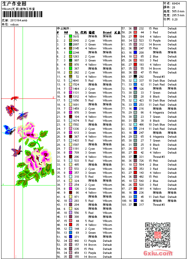 靓花 牡丹花 点此上传花版兑乐绣币/现金 emb花版参数: 大小:470.50 KB / 尺寸:286*505[毫米] / 针数:68434针 / 线色:28 / 格式:emb / 版本:e2 版带文件需绣花软件方可打开,可配色打印导出各种格式或直接上机绣。如无绣花软件可下载1:1模拟效果图。 PNG图片信息:大小:1.6 (MB) /图宽*高:1081x1911(像素) 上传作者( 4166*** ) 获得乐绣币:30个 emb下载 1:1图下载 关闭 相似花型推荐: 孔雀 男装后幅 polo 字母 梅花鹿 鸳鸯 鸟 凤凰 波浪 鱼 太极鱼 龙 双龙戏珠 领 中东领花 男装字母 polo 集 男装胸前字母 polo 男装后幅 polo 字母 鸳鸯戏水 精品 荷花 鸟 清趣图 精品 人物 门神 武将 门将 古代 精品 梅花 精品 上一个花样:风景 江南水乡 依山傍水 精品 裙 下一个花样:孔雀