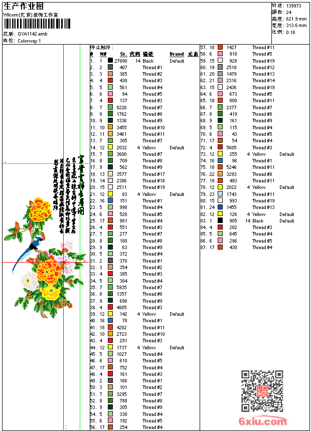 牡丹花 鸟 富贵吉祥长寿图 工艺精品 点此上传花版兑乐绣币/现金 emb花版参数: 大小:837.50 KB / 尺寸:314*622[毫米] / 针数:139973针 / 线色:24 / 格式:emb / 版本:7 版带文件需绣花软件方可打开,可配色打印导出各种格式或直接上机绣。如无绣花软件可下载1:1模拟效果图。 PNG图片信息:大小:2.2 (MB) /图宽*高:1187x2353(像素) 上传作者( keen*** ) 获得乐绣币:140个 emb下载 1:1图下载 关闭 相似花型推荐: 牡丹花 花开富贵 工艺精品 牡丹花 竹 满园春光 工艺精品 桌布 鸟 中堂画春夏秋冬 夏 工艺精品 鲤鱼 工艺精品 鹰 男装 靓花 一只香 工艺精品 简单花 简单花 简单花 简单花 简单花 小长枕 鹤 仙鹤 鹤 仙鹤 鹤 仙鹤 上一个花样:牡丹花 长尾鸟 富贵吉祥长寿 工艺精品 下一个花样:牡丹花 花开富贵 工艺精品