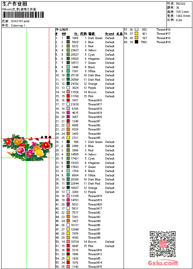 牡丹花 花开富贵 工艺精品 点此上传花版兑乐绣币/现金 emb花版参数: 大小:2.74 MB / 尺寸:1363*728[毫米] / 针数:562322针 / 线色:36 / 格式:emb / 版本:7 版带文件需绣花软件方可打开,可配色打印导出各种格式或直接上机绣。如无绣花软件可下载1:1模拟效果图。 PNG图片信息:大小:17.7 (MB) /图宽*高:5156x2755(像素) 上传作者( keen*** ) 获得乐绣币:562个 emb下载 1:1图下载 关闭 相似花型推荐: 字画 草书作品 工艺精品 荷花 爱莲说 工艺精品 鸟 工艺精品 水果 石榴 工艺精品 风景 松壑飞瀑图 工艺精品 云山雾海 台布 牛 牧童放牛图 工艺精品 牡丹花 长尾鸟 富贵吉祥长寿 工艺精品 牡丹花 鸟 富贵吉祥长寿图 工艺精品 牡丹花 花开富贵 工艺精品 牡丹花 竹 满园春光 工艺精品 桌布 鸟 中堂画春夏秋冬 夏 工艺精品 鲤鱼 工艺精品 鹰 男装 上一个花样:人物 古代美女 工艺精品 下一个花样:字画 草书作品 工艺精品