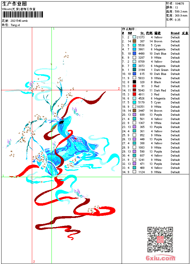鹿 梅花鹿 汉服 点此上传花版兑乐绣币/现金 emb花版参数: 大小:992.50 KB / 尺寸:370*599[毫米] / 针数:104678针 / 线色:13 / 格式:emb / 版本:e2 版带文件需绣花软件方可打开,可配色打印导出各种格式或直接上机绣。如无绣花软件可下载1:1模拟效果图。 PNG图片信息:大小:1.7 (MB) /图宽*高:1400x2267(像素) 上传作者( 郭娟*** ) 获得乐绣币:100个 emb下载 1:1图下载 关闭 相似花型推荐: 龙 牡丹花 靓花 旗袍 牡丹花 靓花 旗袍 牡丹花 荣华富贵 国画 精品 保罗 polo 毛巾绣 虎头 荷花 双金片 女装花 -2mm +5mm 人骑马 2mm珠片 鸽子章 条码 民族风前胸 鹤 汉服 鲤鱼 男 虎头 兔 小兔子 汉服 上一个花样:鸟 下一个花样:龙