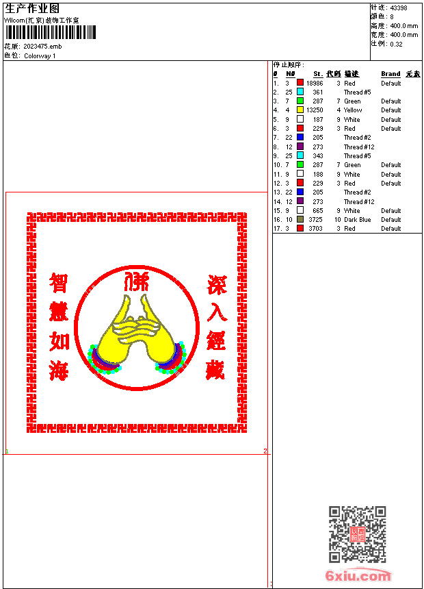 佛 经盖 智慧如海 深入经藏 点此上传花版兑乐绣币/现金 emb花版参数: 大小:557.50 KB / 尺寸:400*400[毫米] / 针数:43398针 / 线色:8 / 格式:emb / 版本:e1.5 版带文件需绣花软件方可打开,可配色打印导出各种格式或直接上机绣。如无绣花软件可下载1:1模拟效果图。 PNG图片信息:大小:1.0 (MB) /图宽*高:1513x1513(像素) 上传作者( pans*** ) 获得乐绣币:20个 emb下载 1:1图下载 关闭 相似花型推荐: 佛 经盖 智慧如海 深入经藏 佛手 佛 界定真香 佛 莲花界定真香 波浪 海浪 佛 宝瓶 佛 宝伞 竹子 佛 宝盖顶 佛 莲花 佛 莲花 佛 宝顶 水果 桃子 菊花 水果 石榴 工艺精品 珠焰龙宫 上一个花样:佛 经盖 智慧如海 深入经藏 东海观音寺 下一个花样:佛 经盖 智慧如海 深入经藏