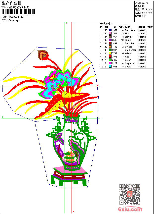 花瓶-精品工艺 点此上传花版兑乐绣币/现金 emb花版参数: 大小:5.87 MB / 尺寸:249*362[毫米] / 针数:37770针 / 线色:12 / 格式:emb / 版本:2006 版带文件需绣花软件方可打开,可配色打印导出各种格式或直接上机绣。如无绣花软件可下载1:1模拟效果图。 PNG图片信息:大小:0.9 (MB) /图宽*高:942x1368(像素) 上传作者( huan*** ) 获得乐绣币:10个 emb下载 1:1图下载 关闭 相似花型推荐: 鸟上竹枝头-精品唐装 梅花书法字-精品工艺 品 荷花蜻蜓-精品工艺品 anta-logo 鸟上梅花枝头-精品工艺品 鸟上兰花枝头-精品工艺品 龙骷髅头 鱼吉祥中国结珠片-鱼跃龙门 鱼吉祥中国结珠片-年年有余 鱼吉祥中国结珠片-富贵平安 鱼吉祥中国结珠片-相亲相爱 鱼吉祥中国结珠片 毛巾绣卡通人物 毛巾绣卡通-大白-超能陆战队 凤凰吉祥喜庆飞舞工艺精品 上一个花样:牡丹花 下一个花样:鸟上竹枝头-精品唐装