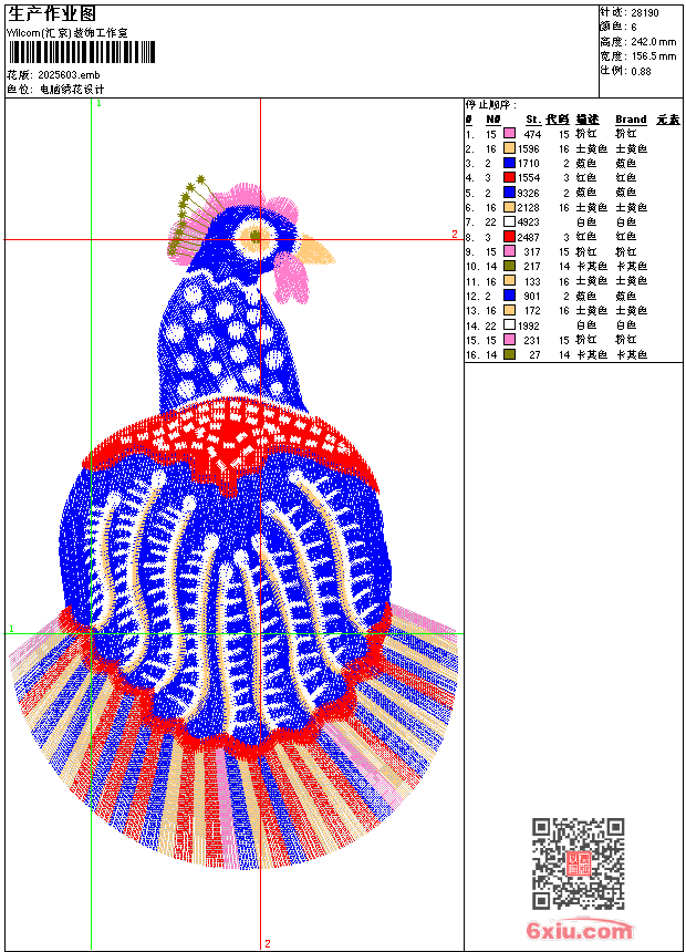 鸡 火鸡 大公鸡 流苏 点此上传花版兑乐绣币/现金 emb花版参数: 大小:4.84 MB / 尺寸:157*242[毫米] / 针数:28190针 / 线色:6 / 格式:emb / 版本:9 版带文件需绣花软件方可打开,可配色打印导出各种格式或直接上机绣。如无绣花软件可下载1:1模拟效果图。 PNG图片信息:大小:0.5 (MB) /图宽*高:592x916(像素) 上传作者( 刷点*** ) 获得乐绣币:30个 emb下载 1:1图下载 关闭 相似花型推荐: 主题 锁针 三角针 衣服绣花 章仔老鹰 墙布 聚宝盆 背景墙 墙布 旭日东升 背景墙 墙布 家和万事兴 背景墙 墙布 花开富贵 背景墙 墙布 花开富贵 背景墙 墙布 源远流长 江山风景 背景墙 精品 兰花 蝴蝶兰 精品 兰花 蝴蝶兰 精品 墙布 松鹤延年 鸟上枝头 精品 背景墙 墙布 如意 鸟语花香 背景墙 梅花 圆 精品 墙布 春和景明 鸟语花香 背景墙 鲤鱼 锦鲤 背景墙 精品 九鱼图 荷花 上一个花样:墙布 鸟语花香 背景墙 下一个花样:主题 锁针 三角针 衣服绣花