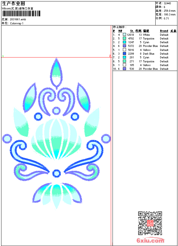 精品贝壳 琉璃 汉服 点此上传花版兑乐绣币/现金 emb花版参数: 大小:225.50 KB / 尺寸:180*259[毫米] / 针数:32443针 / 线色:6 / 格式:emb / 版本:e3 版带文件需绣花软件方可打开,可配色打印导出各种格式或直接上机绣。如无绣花软件可下载1:1模拟效果图。 PNG图片信息:大小:0.6 (MB) /图宽*高:683x980(像素) 上传作者( ZJQ8*** ) 获得乐绣币:1个 emb下载 1:1图下载 关闭 相似花型推荐: 精品小花 汉服 琉璃花 精品 汉服 贝壳花 插针 汉服 精品腰头花 汉服 贝壳腰头 汉服 腰头 汉服 汉服 花 汉服 花 汉服 花 汉服 花 小凤凰 汉服 凤凰 汉服 蝴蝶花 汉服 莲花鱼 汉服 神兽 乘黄 汉服 狐狸 上一个花样:精品贝壳 汉服 下一个花样:精品小花 汉服