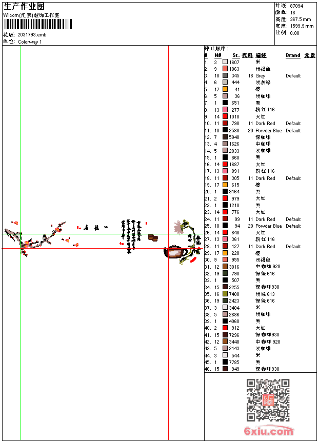 茶道 精品 点此上传花版兑乐绣币/现金 emb花版参数: 大小:449.50 KB / 尺寸:1600*368[毫米] / 针数:87094针 / 线色:18 / 格式:emb / 版本:e1.5 版带文件需绣花软件方可打开,可配色打印导出各种格式或直接上机绣。如无绣花软件可下载1:1模拟效果图。 PNG图片信息:大小:1.9 (MB) /图宽*高:6052x1391(像素) 上传作者( 利绣*** ) 获得乐绣币:80个 emb下载 1:1图下载 关闭 相似花型推荐: 喜上眉梢 喜鹊 鸟 精品 墙布 绣球花 背景墙 太阳笑脸牙刷绣 老虎毛巾+珠片 金龙鱼 墙布 背景墙鱼2代 墙布 背景墙轻奢现代马 鸟 鸟 鸟 鸟 鸟 鸟 鸟 骷髅 上一个花样:鸟语花香 精品 仿苏绣手绣,圆形绣花 扇子 桃花 下一个花样:喜上眉梢 喜鹊 鸟 精品