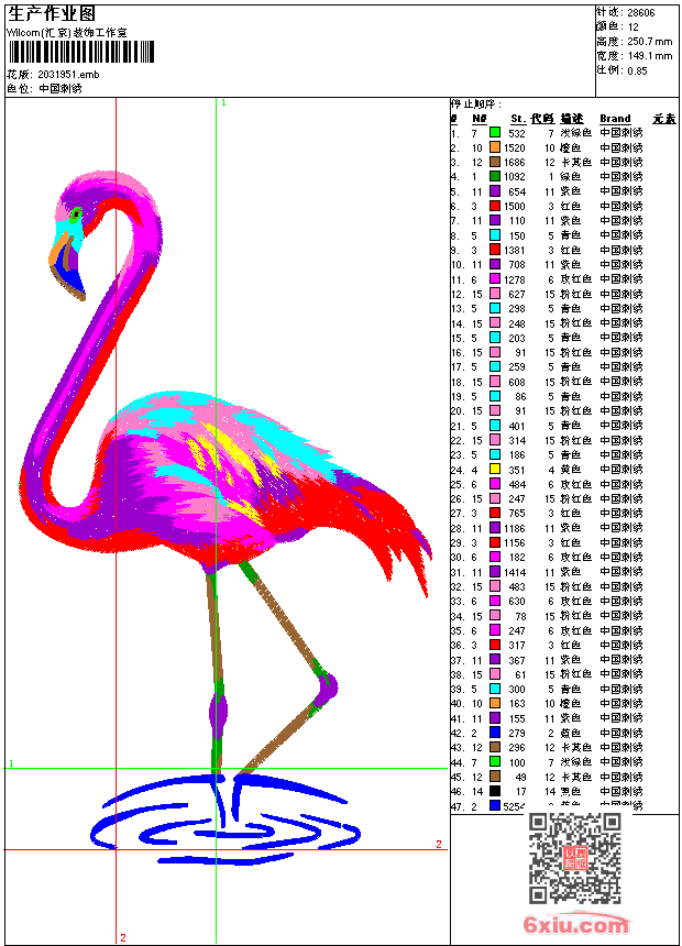 鹤 点此上传花版兑乐绣币/现金 emb花版参数: 大小:453.50 KB / 尺寸:149*251[毫米] / 针数:28606针 / 线色:12 / 格式:emb / 版本:e2 版带文件需绣花软件方可打开,可配色打印导出各种格式或直接上机绣。如无绣花软件可下载1:1模拟效果图。 PNG图片信息:大小:0.3 (MB) /图宽*高:564x949(像素) 上传作者( 明灏*** ) 获得乐绣币:5个 emb下载 1:1图下载 关闭 相似花型推荐: 虎 英文字 保罗骑马polo 龙凤民族风 精美 墙布 山水玄关 背景墙 墙布 背景墙 年年有鱼 莲年有余 墙布 背景墙 飞鸟 墙布 祥云系列 背景墙 墙布 金色流水立体 背景墙 狗狗毛巾绣 鸟语花香 精品 仿苏绣手绣,圆形绣花 扇子 茶道 精品 喜上眉梢 喜鹊 鸟 精品 墙布 绣球花 背景墙 太阳笑脸牙刷绣 老虎毛巾+珠片 上一个花样:狗 下一个花样:虎 英文字