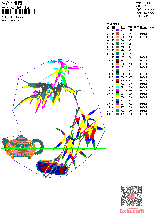 竹 茶杯 茶壶 精品 中国风 点此上传花版兑乐绣币/现金 emb花版参数: 大小:5.21 MB / 尺寸:280*323[毫米] / 针数:17958针 / 线色:19 / 格式:emb / 版本:2006 版带文件需绣花软件方可打开,可配色打印导出各种格式或直接上机绣。如无绣花软件可下载1:1模拟效果图。 PNG图片信息:大小:0.8 (MB) /图宽*高:1061x1221(像素) 上传作者( magi*** ) 获得乐绣币:18个 emb下载 1:1图下载 关闭 相似花型推荐: 民族风 曲线 水墨 长裙 鲤鱼 荷花 抱枕 满幅精美 松鼠 鹰 精品老鹰 鸟 抽象 靓图 狗 鹤 虎 英文字 保罗骑马polo 龙凤民族风 精美 墙布 山水玄关 背景墙 墙布 背景墙 年年有鱼 莲年有余 墙布 背景墙 飞鸟 上一个花样:凤凰 新娘装 传统 下一个花样:民族风 曲线
