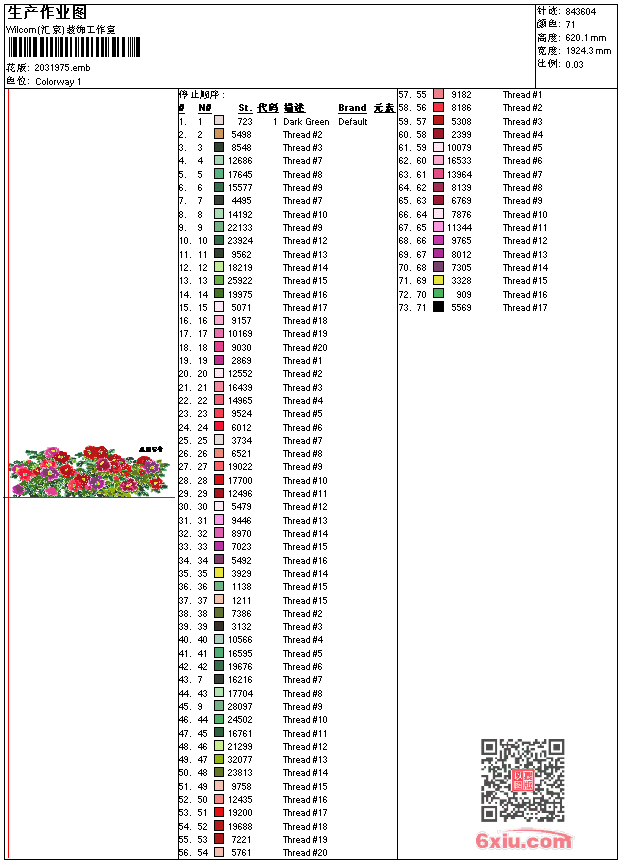 花开富贵 精品 挂画 工艺品 牡丹花 点此上传花版兑乐绣币/现金 emb花版参数: 大小:3.94 MB / 尺寸:1924*620[毫米] / 针数:843604针 / 线色:71 / 格式:emb / 版本:e3 版带文件需绣花软件方可打开,可配色打印导出各种格式或直接上机绣。如无绣花软件可下载1:1模拟效果图。 PNG图片信息:大小:26.4 (MB) /图宽*高:7272x2343(像素) 上传作者( QDS2*** ) 获得乐绣币:800个 emb下载 1:1图下载 关闭 相似花型推荐: 富贵吉祥 精品 挂画 牡丹花 江山多娇 精品 风景 客厅 挂画 聚宝盆 精品 中堂 挂画 风景 墙布 玉兰花 背景墙 墙布 荷花 背景墙 玄关 山水画 风景 龙 新娘装 民族 凤凰 新娘装 传统 竹 茶杯 茶壶 精品 中国风 民族风 曲线 水墨 长裙 鲤鱼 荷花 抱枕 满幅精美 松鼠 鹰 精品老鹰 上一个花样:花开富贵 精品 挂画 工艺品 牡丹花 下一个花样:富贵吉祥 精品 挂画 牡丹花