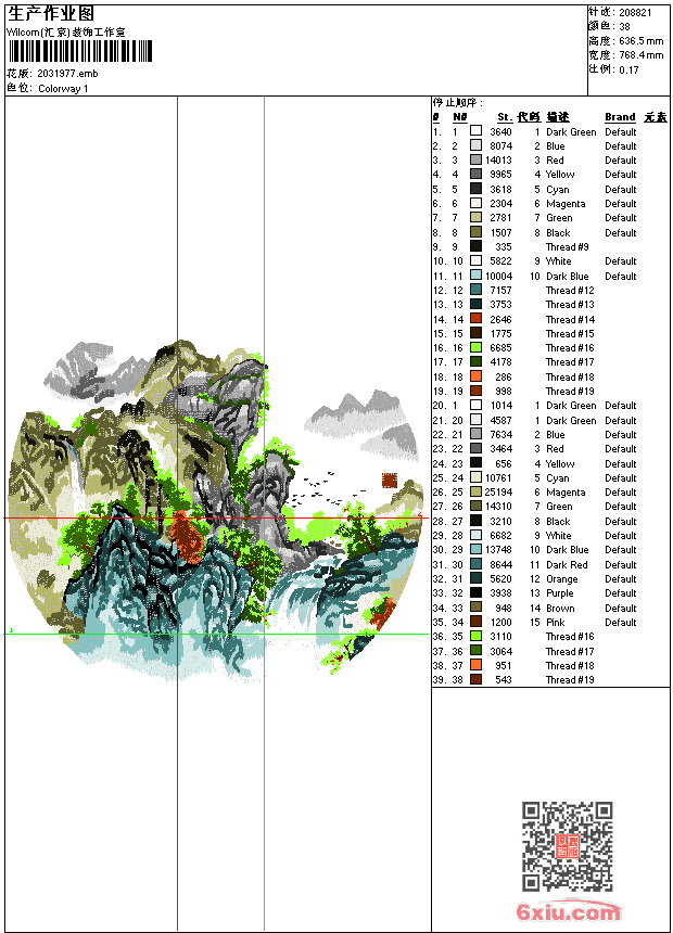 山水画 风景 精品 圆 点此上传花版兑乐绣币/现金 emb花版参数: 大小:1.33 MB / 尺寸:768*637[毫米] / 针数:208821针 / 线色:38 / 格式:emb / 版本:e2 版带文件需绣花软件方可打开,可配色打印导出各种格式或直接上机绣。如无绣花软件可下载1:1模拟效果图。 PNG图片信息:大小:9.2 (MB) /图宽*高:2907x2408(像素) 上传作者( QDS2*** ) 获得乐绣币:200个 emb下载 1:1图下载 关闭 相似花型推荐: 花开富贵 精品 挂画 工艺品 牡丹花 花开富贵 精品 挂画 工艺品 牡丹花 富贵吉祥 精品 挂画 牡丹花 江山多娇 精品 风景 客厅 挂画 聚宝盆 精品 中堂 挂画 风景 墙布 玉兰花 背景墙 墙布 荷花 背景墙 玄关 山水画 风景 龙 新娘装 民族 凤凰 新娘装 传统 竹 茶杯 茶壶 精品 中国风 民族风 曲线 水墨 长裙 鲤鱼 荷花 抱枕 满幅精美 上一个花样:马头 精品 下一个花样:花开富贵 精品 挂画 工艺品 牡丹花