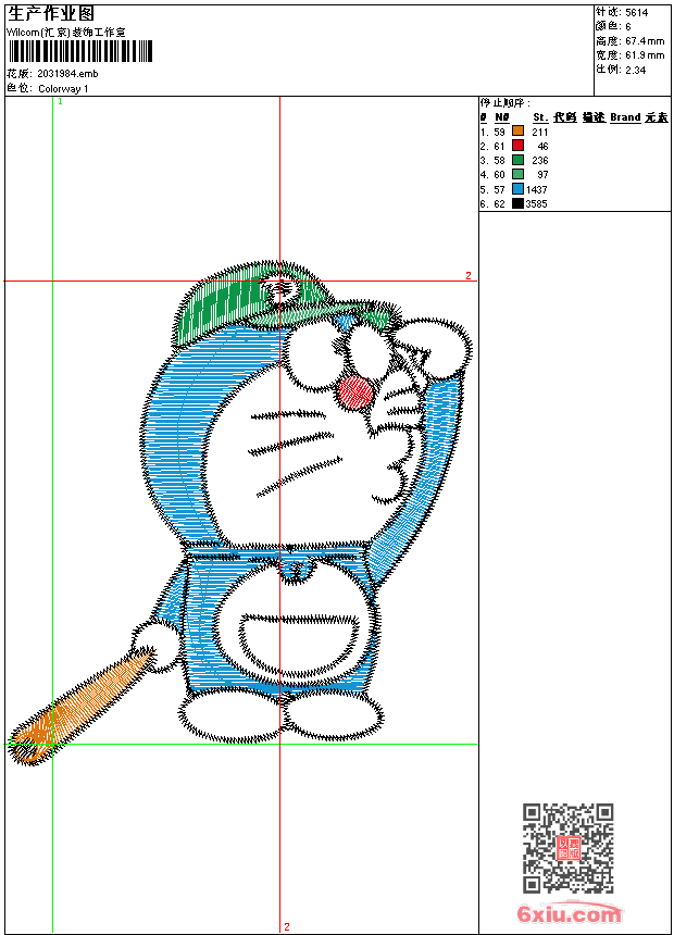 叮当猫 点此上传花版兑乐绣币/现金 emb花版参数: 大小:71.50 KB / 尺寸:62*67[毫米] / 针数:5614针 / 线色:6 / 格式:emb / 版本:e2 版带文件需绣花软件方可打开,可配色打印导出各种格式或直接上机绣。如无绣花软件可下载1:1模拟效果图。 PNG图片信息:大小:0.1 (MB) /图宽*高:235x255(像素) 上传作者( 瑞珂*** ) 获得乐绣币:1个 emb下载 1:1图下载 关闭 相似花型推荐: 墙布 苏绣鸟语花香背景墙 鱼跃龙门 精品 挂画 鲤鱼 花盘 精品 马头 精品 山水画 风景 精品 圆 花开富贵 精品 挂画 工艺品 牡丹花 花开富贵 精品 挂画 工艺品 牡丹花 富贵吉祥 精品 挂画 牡丹花 江山多娇 精品 风景 客厅 挂画 聚宝盆 精品 中堂 挂画 风景 墙布 玉兰花 背景墙 墙布 荷花 背景墙 玄关 山水画 风景 龙 新娘装 民族 凤凰 新娘装 传统 上一个花样:汉服 靓花 下一个花样:墙布 苏绣鸟语花香背景墙
