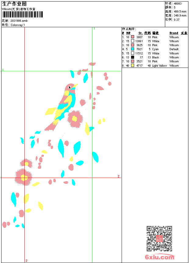 汉服黄鹂鸟 点此上传花版兑乐绣币/现金 emb花版参数: 大小:268.50 KB / 尺寸:350*499[毫米] / 针数:48083针 / 线色:5 / 格式:emb / 版本:9 版带文件需绣花软件方可打开,可配色打印导出各种格式或直接上机绣。如无绣花软件可下载1:1模拟效果图。 PNG图片信息:大小:1.1 (MB) /图宽*高:1324x1890(像素) 上传作者( 1927*** ) 获得乐绣币:50个 emb下载 1:1图下载 关闭 相似花型推荐: 汉服 靓花 叮当猫 墙布 苏绣鸟语花香背景墙 鱼跃龙门 精品 挂画 鲤鱼 花盘 精品 马头 精品 山水画 风景 精品 圆 花开富贵 精品 挂画 工艺品 牡丹花 花开富贵 精品 挂画 工艺品 牡丹花 富贵吉祥 精品 挂画 牡丹花 江山多娇 精品 风景 客厅 挂画 聚宝盆 精品 中堂 挂画 风景 墙布 玉兰花 背景墙 墙布 荷花 背景墙 玄关 山水画 风景 上一个花样:三联 大雁山水之一 精品 下一个花样:汉服 靓花