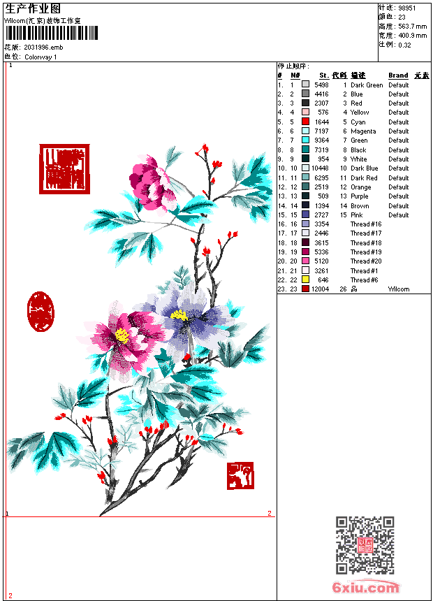 红紫牡丹之三 精品 三联 点此上传花版兑乐绣币/现金 emb花版参数: 大小:723.00 KB / 尺寸:401*564[毫米] / 针数:98951针 / 线色:23 / 格式:emb / 版本:e2.0 版带文件需绣花软件方可打开,可配色打印导出各种格式或直接上机绣。如无绣花软件可下载1:1模拟效果图。 PNG图片信息:大小:2.6 (MB) /图宽*高:1517x2133(像素) 上传作者( QDS2*** ) 获得乐绣币:60个 emb下载 1:1图下载 关闭 相似花型推荐: 红紫牡丹之二 精品 三联 红紫牡丹之一 精品 三联 红枫林 精品 黄金大道 三联 荷花鲤鱼之三 精品 三联 荷花鲤鱼之二 精品 三联 荷花鲤鱼之一 精品 三联 大雁山水之三 精品 三联 大雁山水之二 精品 三联 大雁山水之一 精品 汉服黄鹂鸟 汉服 靓花 叮当猫 墙布 苏绣鸟语花香背景墙 鱼跃龙门 精品 挂画 鲤鱼 花盘 精品 上一个花样:蝴蝶兰之一 精品 三联 下一个花样:红紫牡丹之二 精品 三联