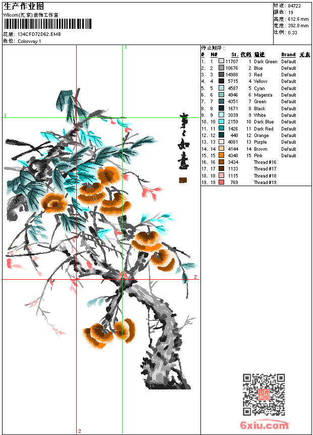 精品 果树 点此上传花版兑乐绣币/现金 emb花版参数: 大小:538.00 KB / 尺寸:393*613[毫米] / 针数:84723针 / 线色:19 / 格式:emb / 版本:2006 版带文件需绣花软件方可打开,可配色打印导出各种格式或直接上机绣。如无绣花软件可下载1:1模拟效果图。 PNG图片信息:大小:2.7 (MB) /图宽*高:1486x2318(像素) 上传作者( *** ) 获得乐绣币:80个 emb下载 1:1图下载 关闭 相似花型推荐: 鱼 锦鲤 精品 福 圆形 蝙蝠 蝴蝶 竹子 靓花 插针 蝴蝶 兰花 鸟 圆形 靓花 蝴蝶 靓花 民族风 靓花 中国风 民族风 上衣 龙王 龙王 靓花 旗袍 靓花 牡丹花 上一个花样:松树 风景 扇子 下一个花样:鱼 锦鲤 精品