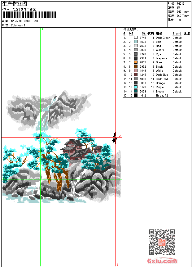 山水 风景 精品 点此上传花版兑乐绣币/现金 emb花版参数: 大小:384.00 KB / 尺寸:361*342[毫米] / 针数:74015针 / 线色:15 / 格式:emb / 版本:2006 版带文件需绣花软件方可打开,可配色打印导出各种格式或直接上机绣。如无绣花软件可下载1:1模拟效果图。 PNG图片信息:大小:2.5 (MB) /图宽*高:1365x1295(像素) 上传作者( *** ) 获得乐绣币:个 emb下载 1:1图下载 关闭 相似花型推荐: 风景 山水 挂画 精品 松树 风景 扇子 精品 果树 鱼 锦鲤 精品 福 圆形 蝙蝠 蝴蝶 竹子 靓花 插针 蝴蝶 兰花 鸟 圆形 靓花 蝴蝶 靓花 民族风 靓花 中国风 民族风 上衣 龙王 上一个花样:风景 山水 精品 下一个花样:风景 山水 挂画 精品