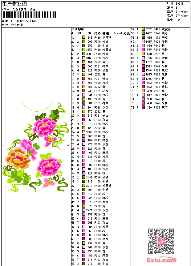 牡丹 旗袍 靓花 点此上传花版兑乐绣币/现金 emb花版参数: 大小:560.00 KB / 尺寸:375*514[毫米] / 针数:89338针 / 线色:9 / 格式:emb / 版本:e2 版带文件需绣花软件方可打开,可配色打印导出各种格式或直接上机绣。如无绣花软件可下载1:1模拟效果图。 PNG图片信息:大小:2.5 (MB) /图宽*高:1417x1945(像素) 上传作者( *** ) 获得乐绣币:80个 emb下载 1:1图下载 关闭 相似花型推荐: 扇子 风景 诗词 树 扇子 风景 诗词 树 风景 山水 精品 山水 风景 精品 风景 山水 挂画 精品 松树 风景 扇子 精品 果树 鱼 锦鲤 精品 福 圆形 蝙蝠 蝴蝶 竹子 靓花 插针 蝴蝶 兰花 鸟 圆形 靓花 蝴蝶 上一个花样:葡萄 精品 下一个花样:扇子 风景 诗词 树